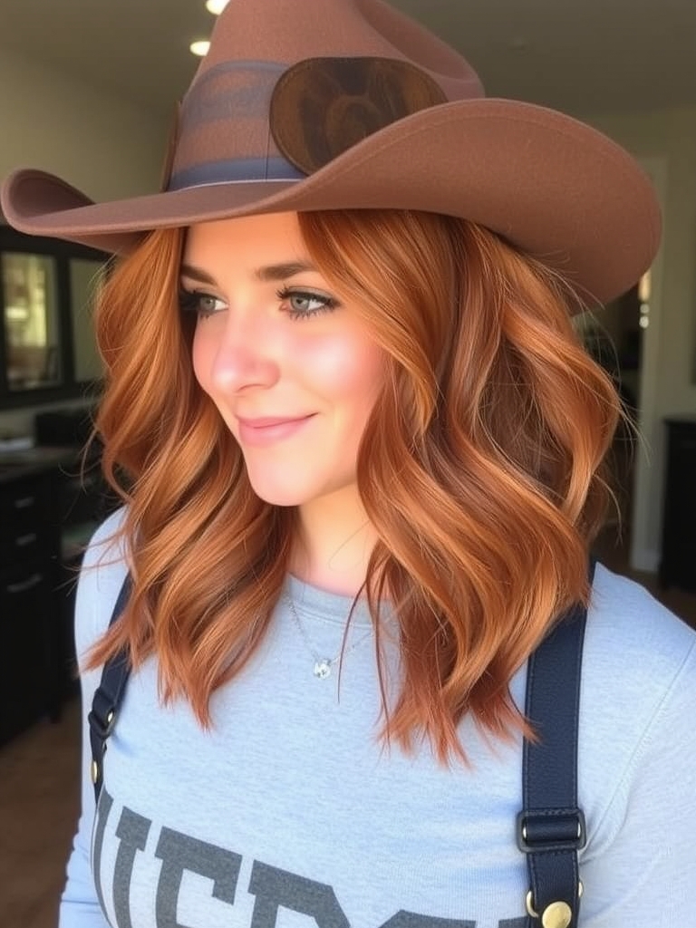 Channel a rustic yet sophisticated vibe with Cowboy Copper and Copper Highlights Colors Fall Hair. This unique color blend combines warm copper tones with earthy highlights for a striking autumn hairstyle. Perfect for those who love Dark Fall Hair Colors, this look works well on medium to long hair and suits various textures. Whether styled in loose waves, braids, or sleek ponytails, this look exudes charm and warmth. Add Sparkly Hair Accessories for an extra touch of elegance, making it ideal for fall festivals or everyday wear.