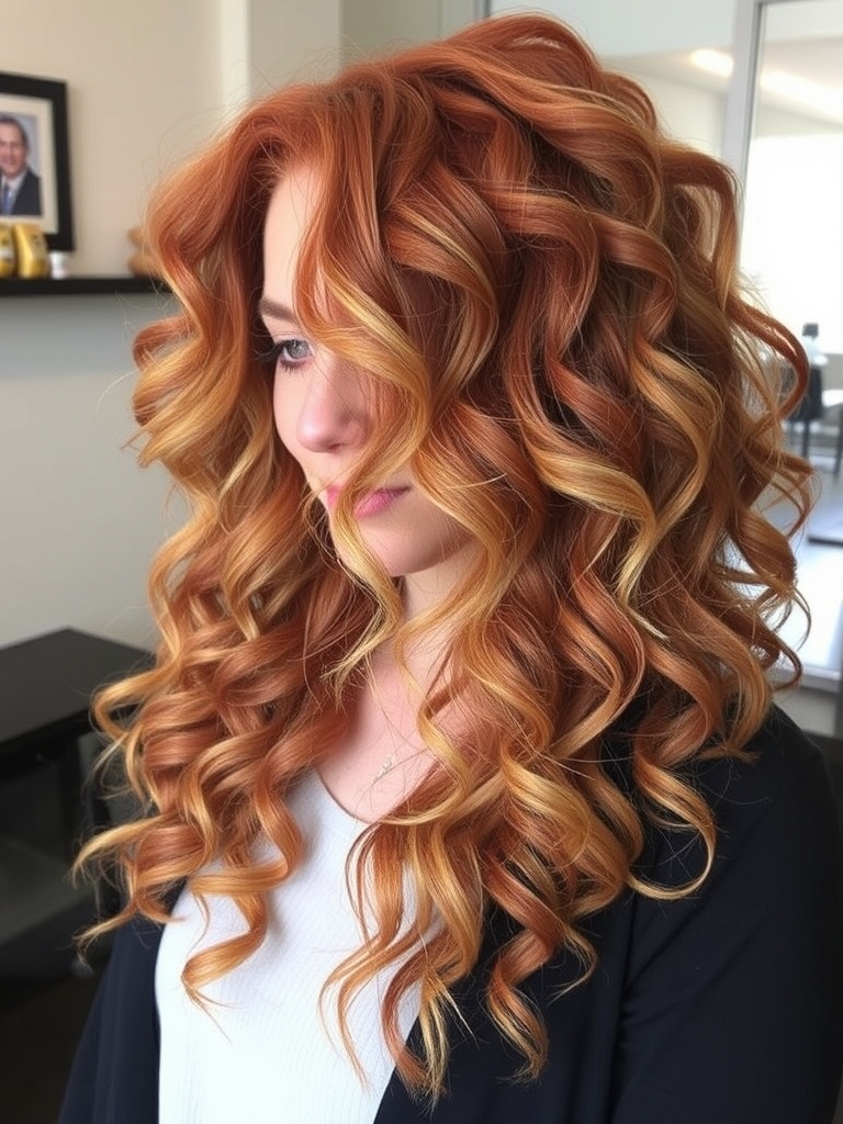 Curly Red Hair With Blonde Highlights And Copper Highlights Colors Fall Hair