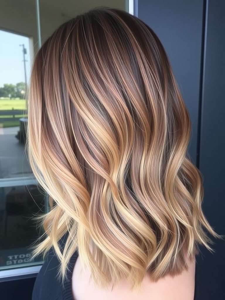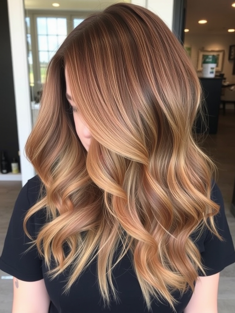 Elevate your style with Light Brown Balayage combined with Copper Highlights Colors Fall Hair for a dynamic and dimensional autumn hairstyle. The light brown tones blend seamlessly with the rich copper highlights, creating a sophisticated and trendy look. Ideal for fans of Brown Hair Looks, this balayage works well on wavy or straight textures, offering a soft yet eye-catching finish. Add Sparkly Hair Accessories to emphasize the warm hues, perfect for formal events or casual outings.