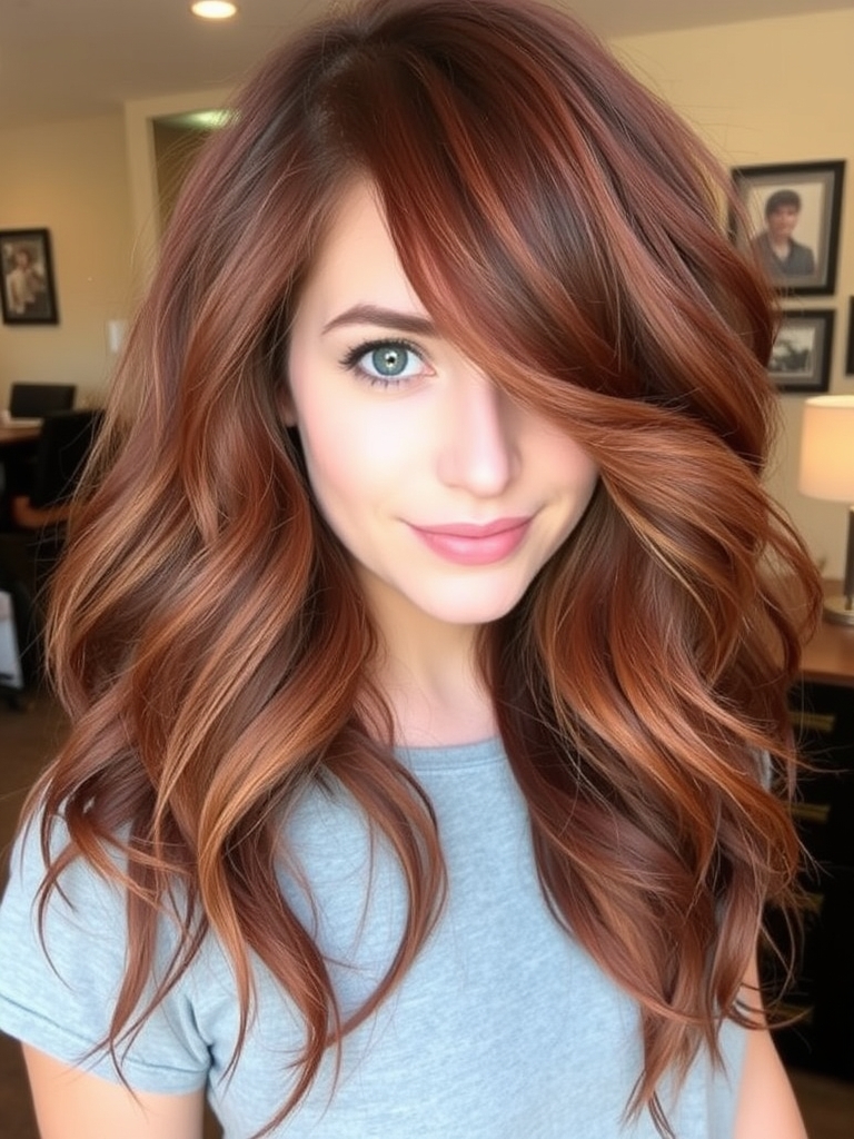 Showcase the beauty of Longer Hair Faster enhanced by Copper Highlights Colors Fall Hair for a stunning autumn style. The copper highlights add warmth and dimension, creating a vibrant look that pairs well with Hair Color Inspiration. This style works for various hair textures, whether you prefer sleek straight strands or voluminous waves. Complement your look with Sparkly Hair Accessories to highlight the copper tones, perfect for everyday wear or festive gatherings.