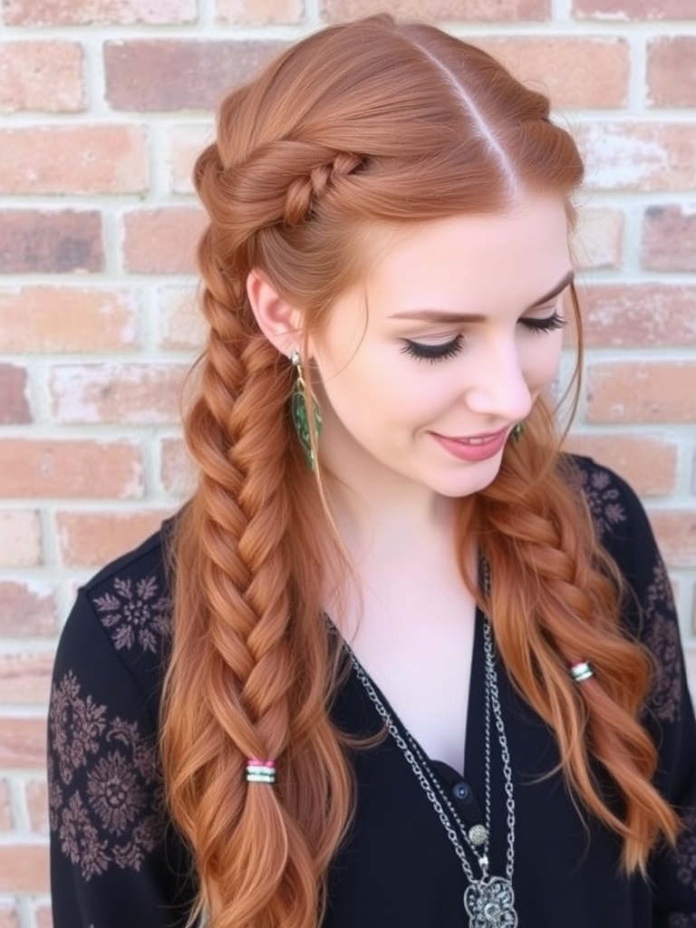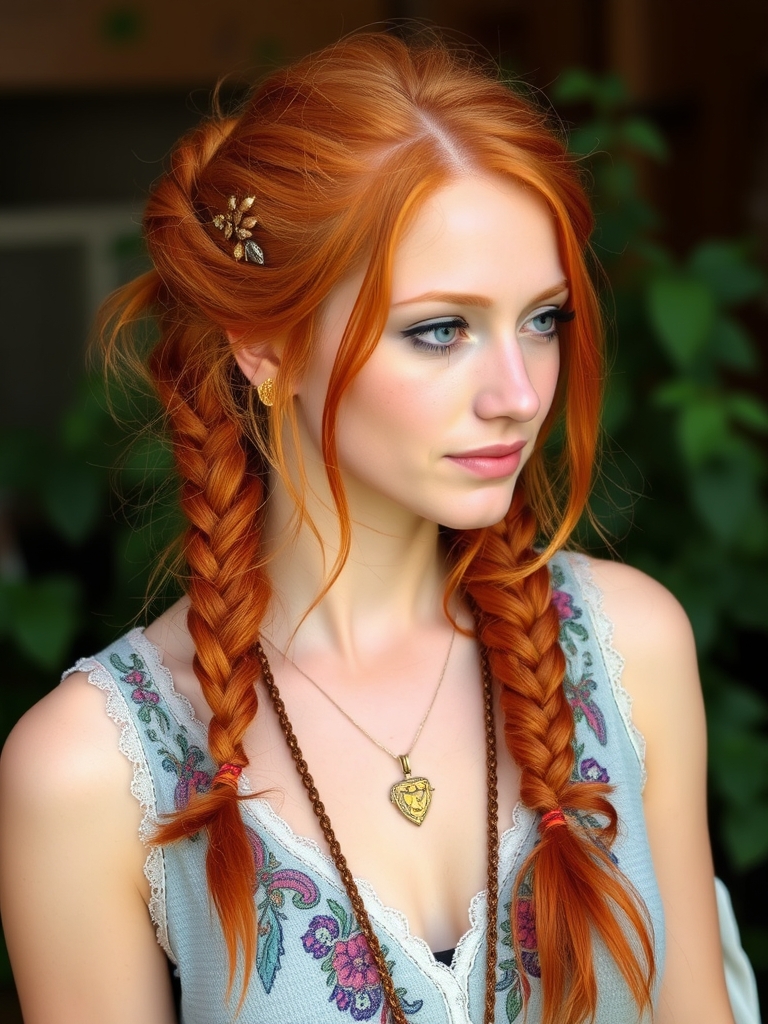 Ginger Braids Boho Hairstyle with Boho Red Hair Charm