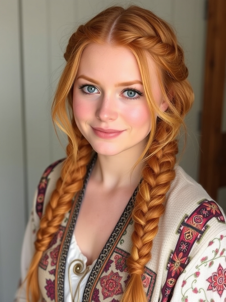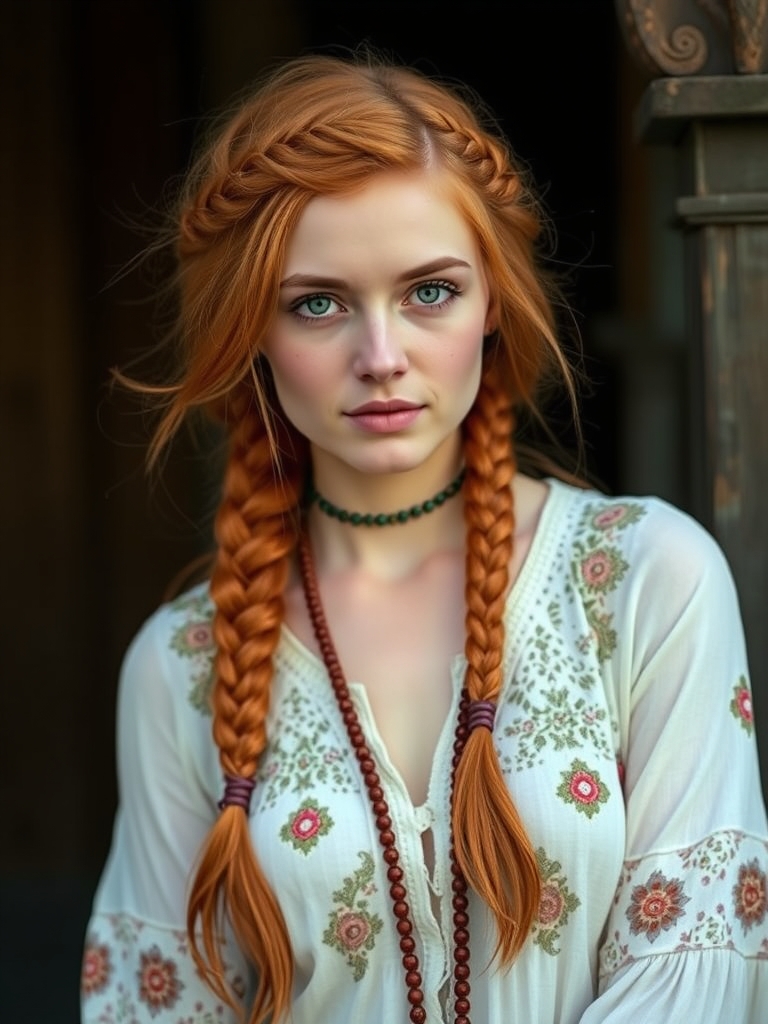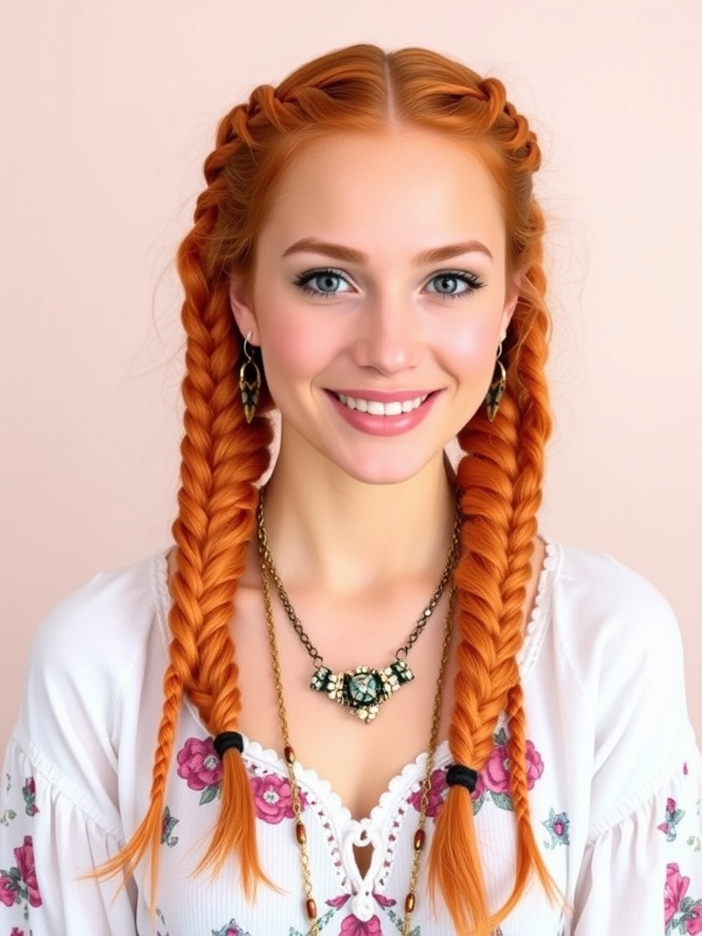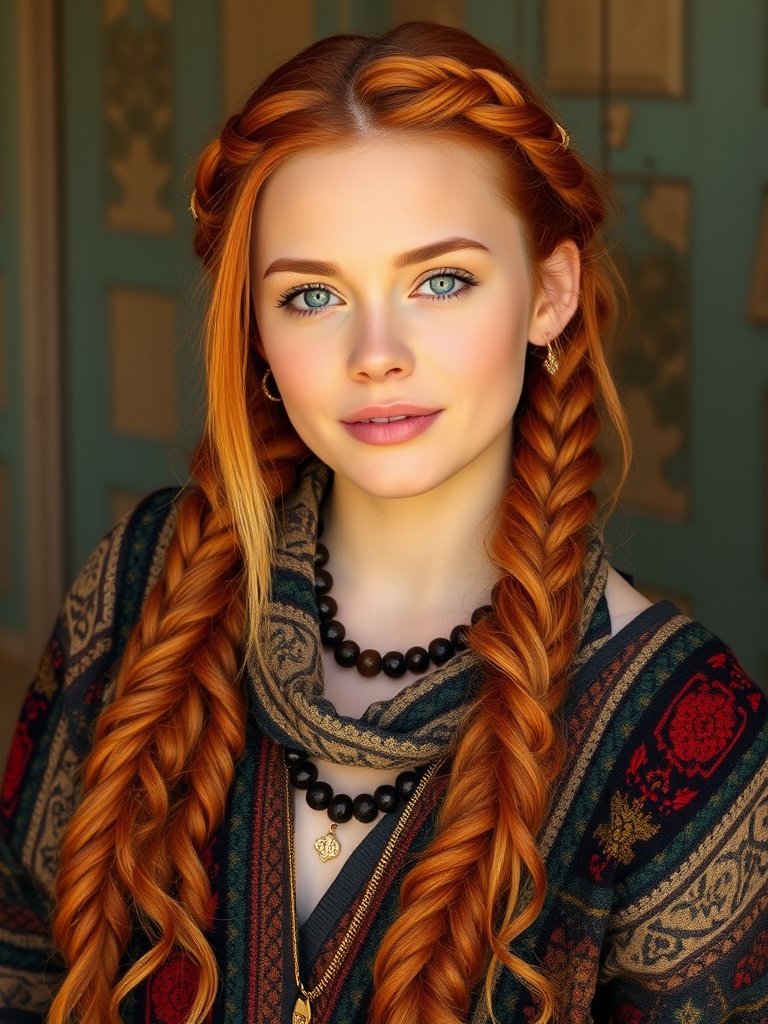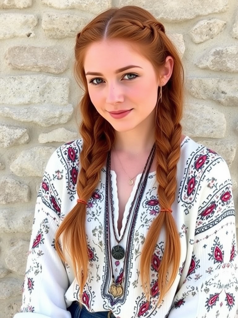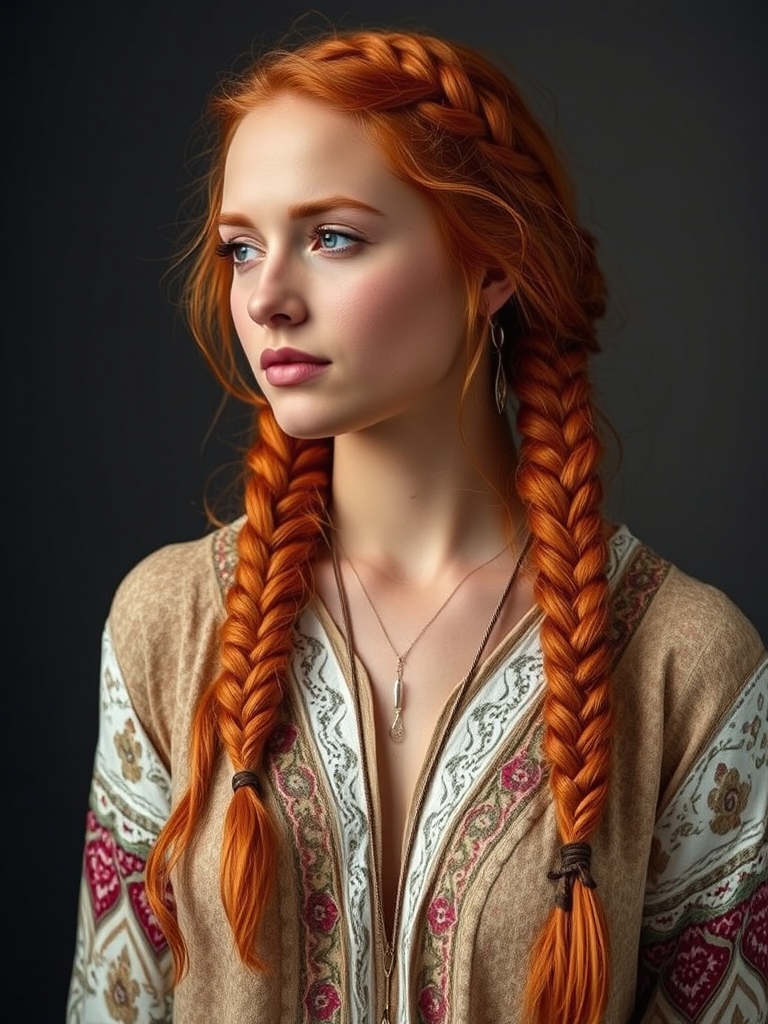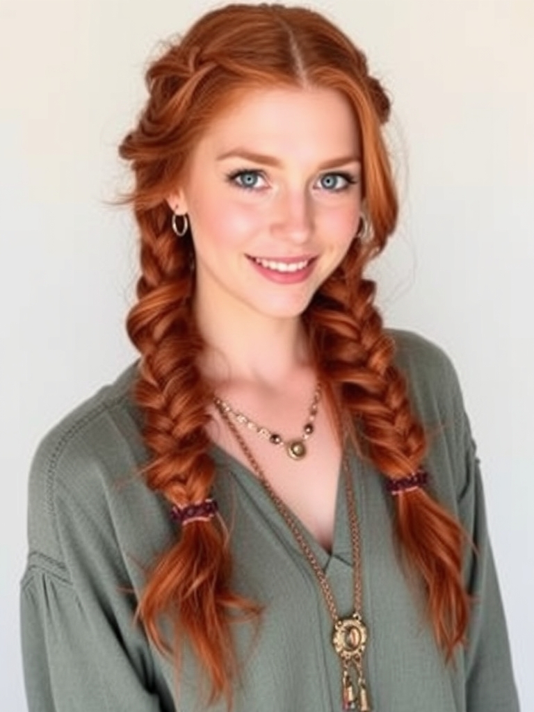 Ginger Braids Boho Hairstyle with Red Hair Woman Art Flair