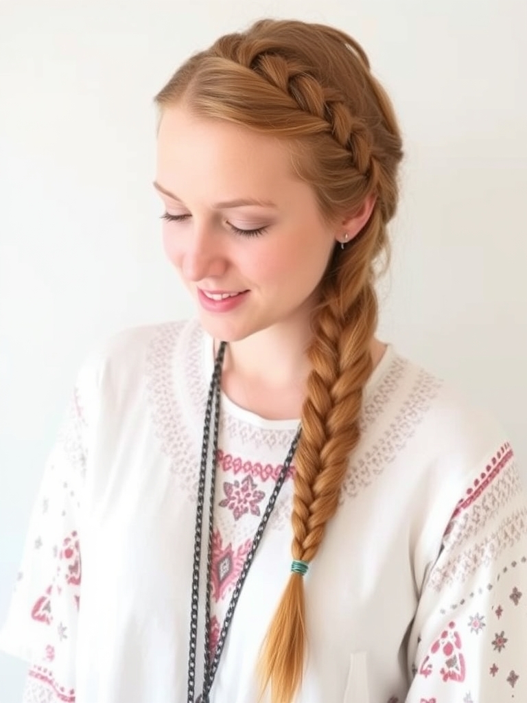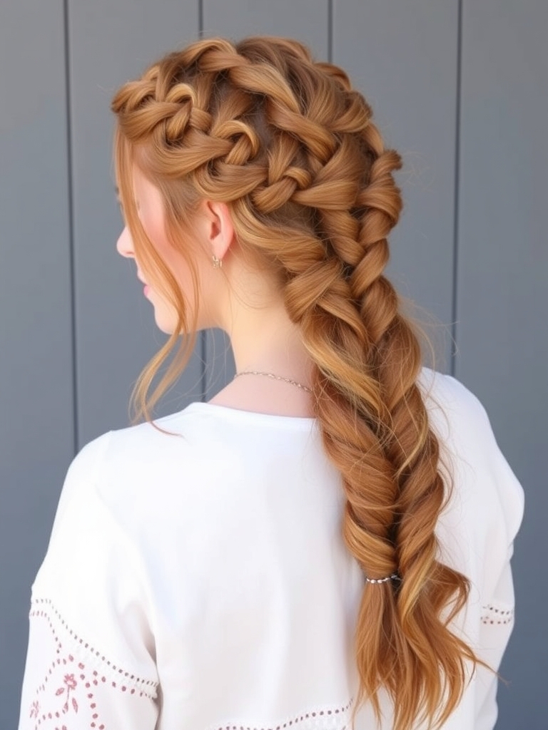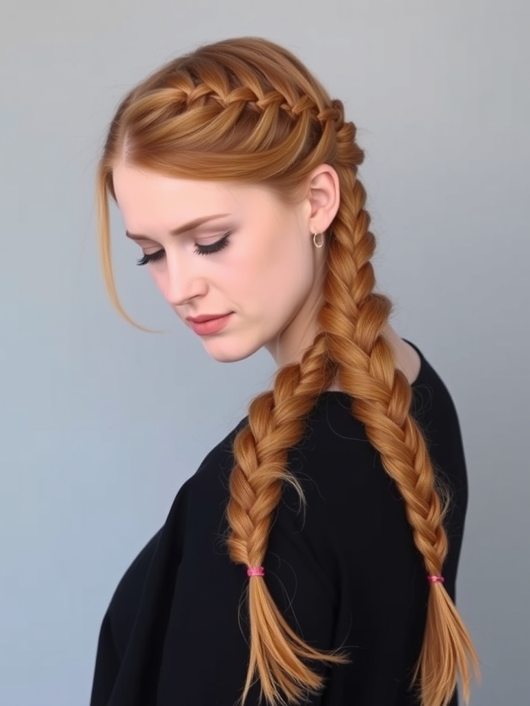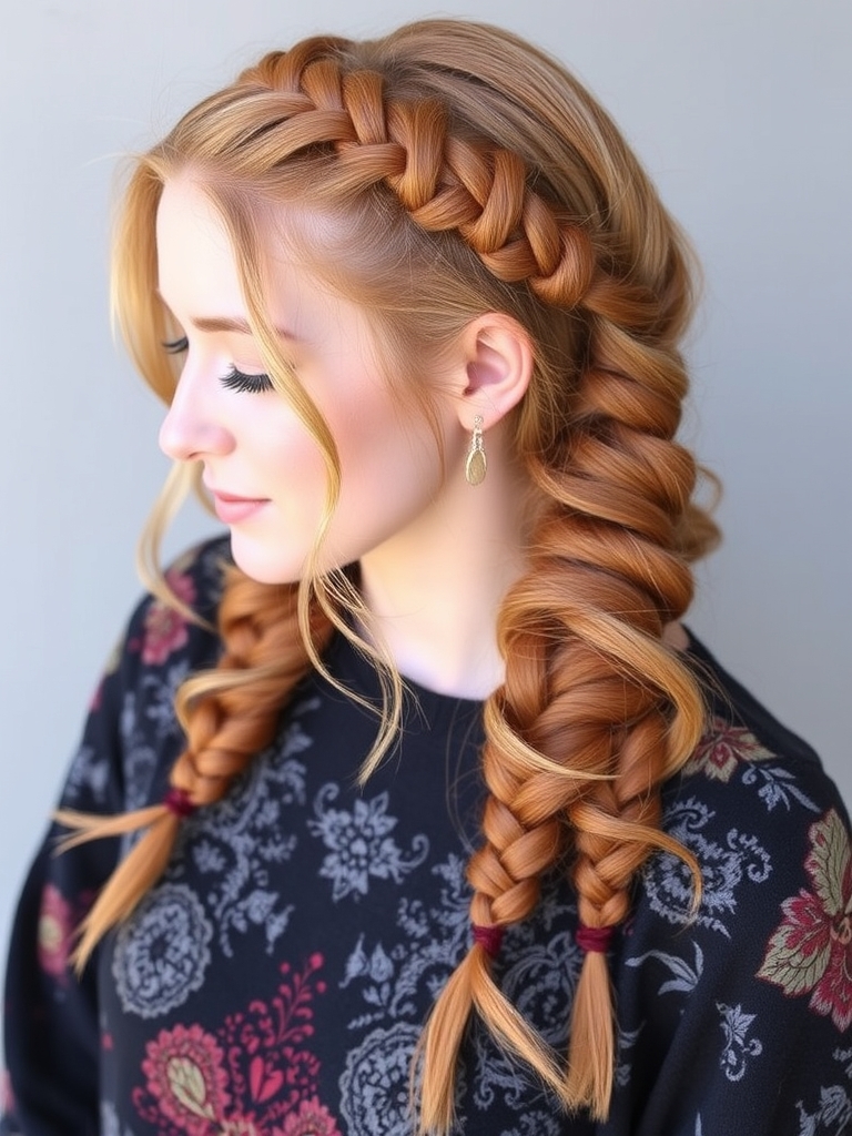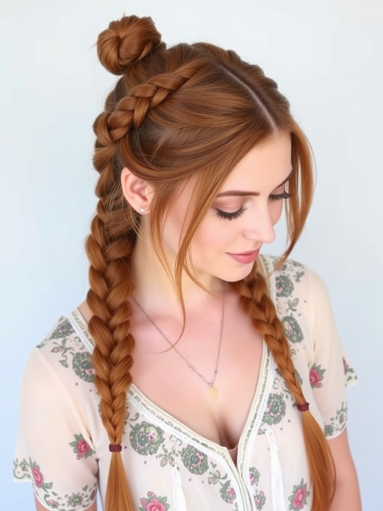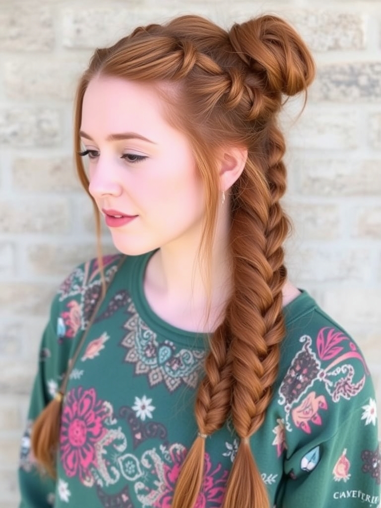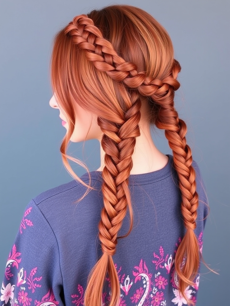 The Ginger Braids Boho Hairstyle takes inspiration from Pretty Braided Hairstyles, blending intricate patterns and warm ginger tones for a captivating look. This versatile style is ideal for formal events or casual outings. Add elegance with a Jeweled Metal Jewelry Sets For Party or a Versatile Foldable Shoulder Bag For Daily Use. Maintain your braids with Hair Maintenance Tips, ensuring they remain neat and polished. The incorporation of Rose Blood hues adds depth, making this hairstyle a true showstopper.