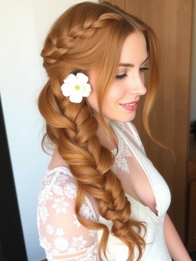 Transform the Ginger Braids Boho Hairstyle into a romantic Wedding Hair Ginger style for your big day. This intricate braid design offers an ethereal touch, perfect for bridal aesthetics. Accessorize with a Luxury Gold Plated Delicate Pearl Necklace or Elegant Bracelets With Heart Charm For Gift for a sophisticated finish. Use Hair Maintenance Tips to ensure your braids stay flawless from the ceremony to the reception. This hairstyle is ideal for highlighting Ginger Hair With Blue Eyes, creating a dreamy and elegant bridal look that will leave everyone in awe.