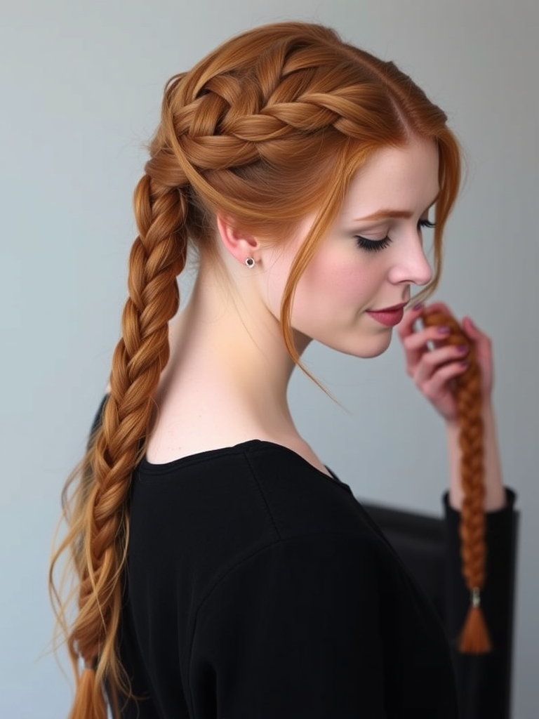 The Ginger Braids Boho Hairstyle embraces the essence of Boho Red Hair, combining earthy tones and loose braiding techniques. This relaxed style exudes a carefree spirit, perfect for festivals or casual outings. Pair it with a Versatile Foldable Shoulder Bag For Daily Use or a Spring Straw Sun Hat With Braided Details for added boho flair. Use Hair Maintenance Tips to ensure the longevity of your braids. The subtle addition of Rose Blood hues enriches the overall aesthetic, making this a standout choice for those who love bold, vibrant styles.