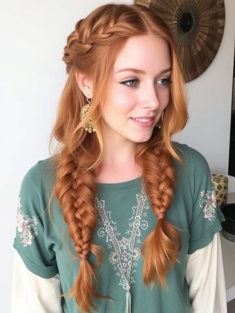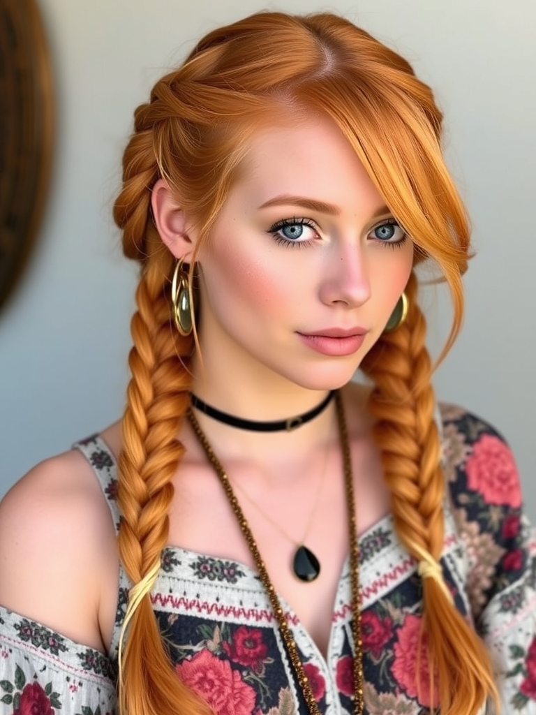 Ginger Braids Boho Hairstyle with Bohemian Braids Influence
