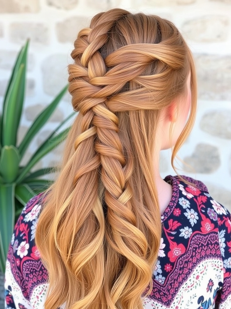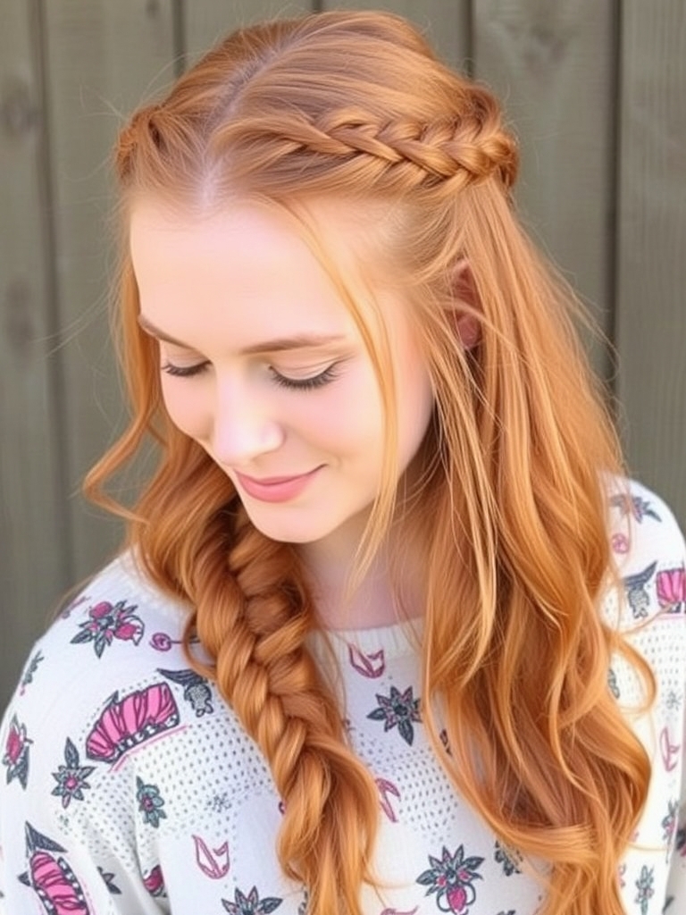 The Ginger Braids Boho Hairstyle, tailored for Hairstyles For Strawberry Blonde Hair, is a perfect blend of warmth and texture. This style celebrates the soft tones of strawberry blonde while incorporating intricate braids that add depth and dimension. To enhance the bohemian look, accessorize with a Spring Straw Sun Hat With Braided Details or a Versatile Foldable Shoulder Bag For Daily Use. Follow Hair Maintenance Tips to ensure your braids retain their shape and the color stays radiant. Pair this hairstyle with a casual yet chic outfit like Linen Tops With Lapel Collar And Patch Pockets. Ideal for photoshoots or special occasions, this hairstyle captures the essence of boho elegance.