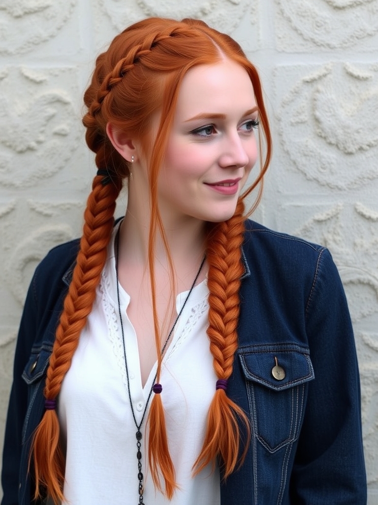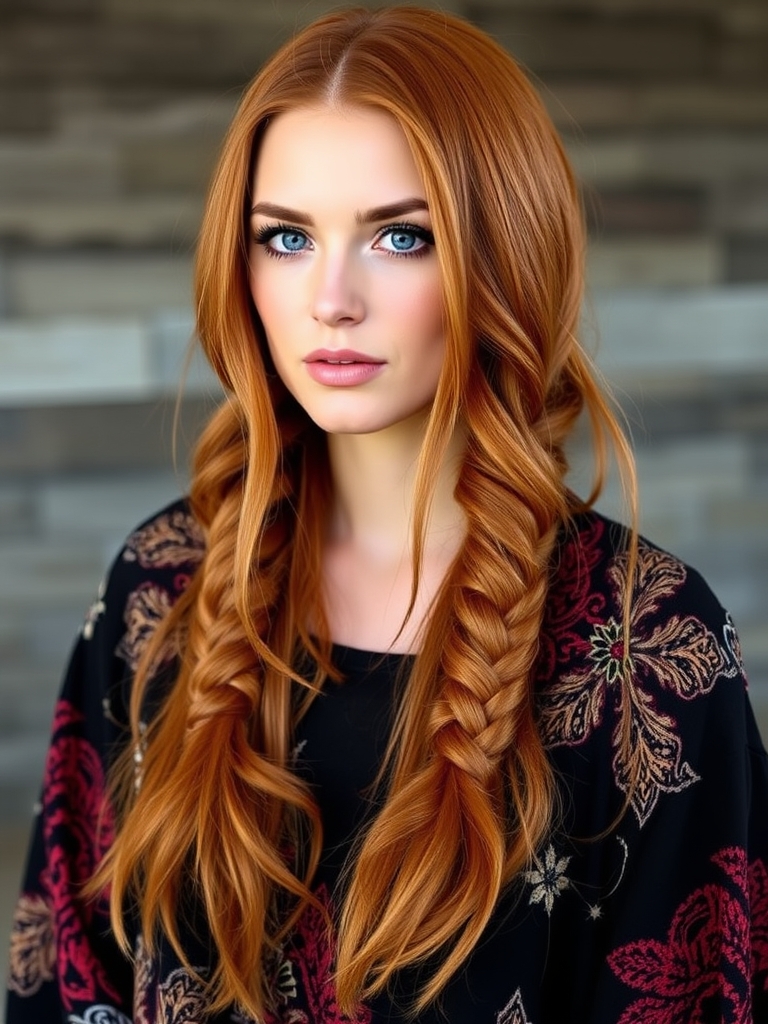 For a polished and trendy look, try the Ginger Braids Boho Hairstyle with Chic Hairstyles appeal. This style incorporates sleek braids with a touch of bohemian flair, making it perfect for workdays or casual outings. Pair it with Linen Tops With Lapel Collar And Patch Pockets or a Versatile Foldable Shoulder Bag For Daily Use for a complete ensemble. Maintain the sleekness of your braids with Hair Maintenance Tips, ensuring they stay smooth and frizz-free throughout the day. The boldness of Ginger Hair With Blue Eyes enhances this look, making it a standout choice for any modern woman.
