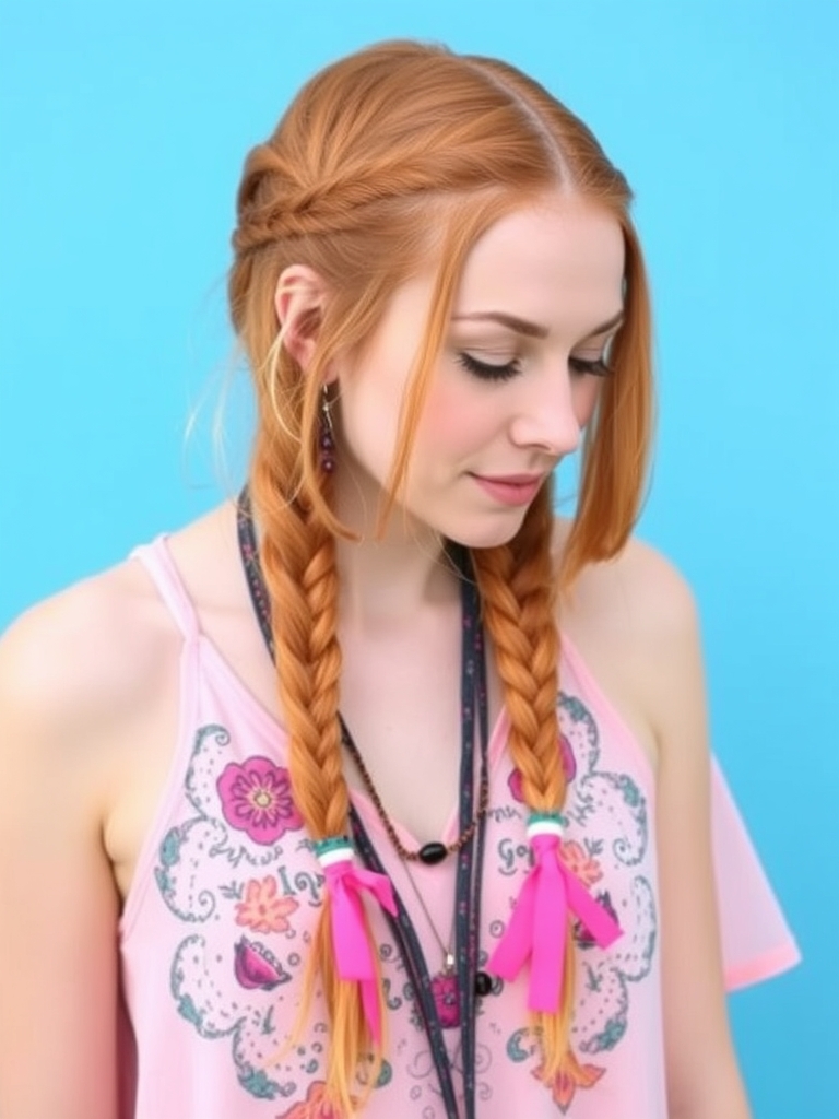 Ginger Braids Boho Hairstyle with Neon Girl Vibes